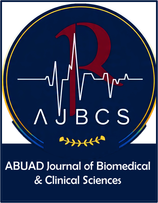 ABUAD Journal of Biomedical & Clinical Sciences (AJBCS) is a double-blind peer-reviewed open-access journal, which is domiciled in the College of Medicine and Health Sciences of Afe Babalola University, Ado-Ekiti (ABUAD), Ekiti State, Nigeria. The ABUAD Journal of Biomedical & Clinical Sciences (AJBCS) is dedicated to advancing knowledge in the fields of biomedical and clinical sciences. The journal aims to serve as a dynamic platform for the dissemination of high-quality research that bridges basic scientific inquiry with clinical application, thereby contributing to improved health outcomes, particularly within the African context and globally. AJBCS provides a platform for the fast publication of research and development outputs. All papers are freely available online with a permanent web identifier. The abstracts will be submitted for indexing in major academic databases. The journal accepts original research contributions that have not been published or submitted for publication elsewhere. ReadMore